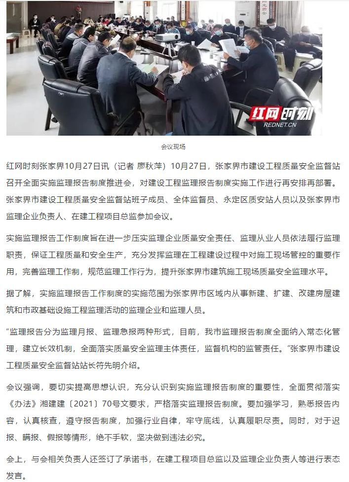 張家界市:扎實(shí)推進(jìn)建設(shè)工程監(jiān)理報(bào)告制度,全面落實(shí)質(zhì)量安全監(jiān)理主體責(zé)任,監(jiān)督機(jī)構(gòu)的監(jiān)管責(zé)任