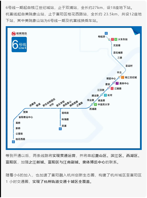小6由6號線一期工程及杭富線組成。