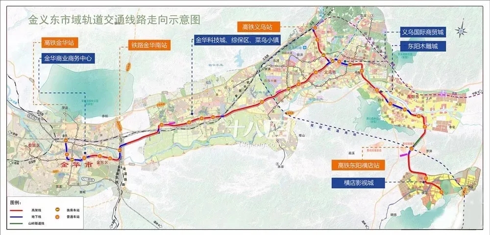 金義東市域軌道交通工程由金華-義烏段和義烏-東陽(橫店)段兩條線路組成,兩條線路在義烏秦塘站呈雙島四線同站臺換乘,同時具備金華-義烏-東陽方向貫通運營條件。金華-義烏-東陽市域軌道交通控制中心設(shè)置在二環(huán)東路站附近,定位為浙中城市群六條市域軌道交通控制中心的功能。
