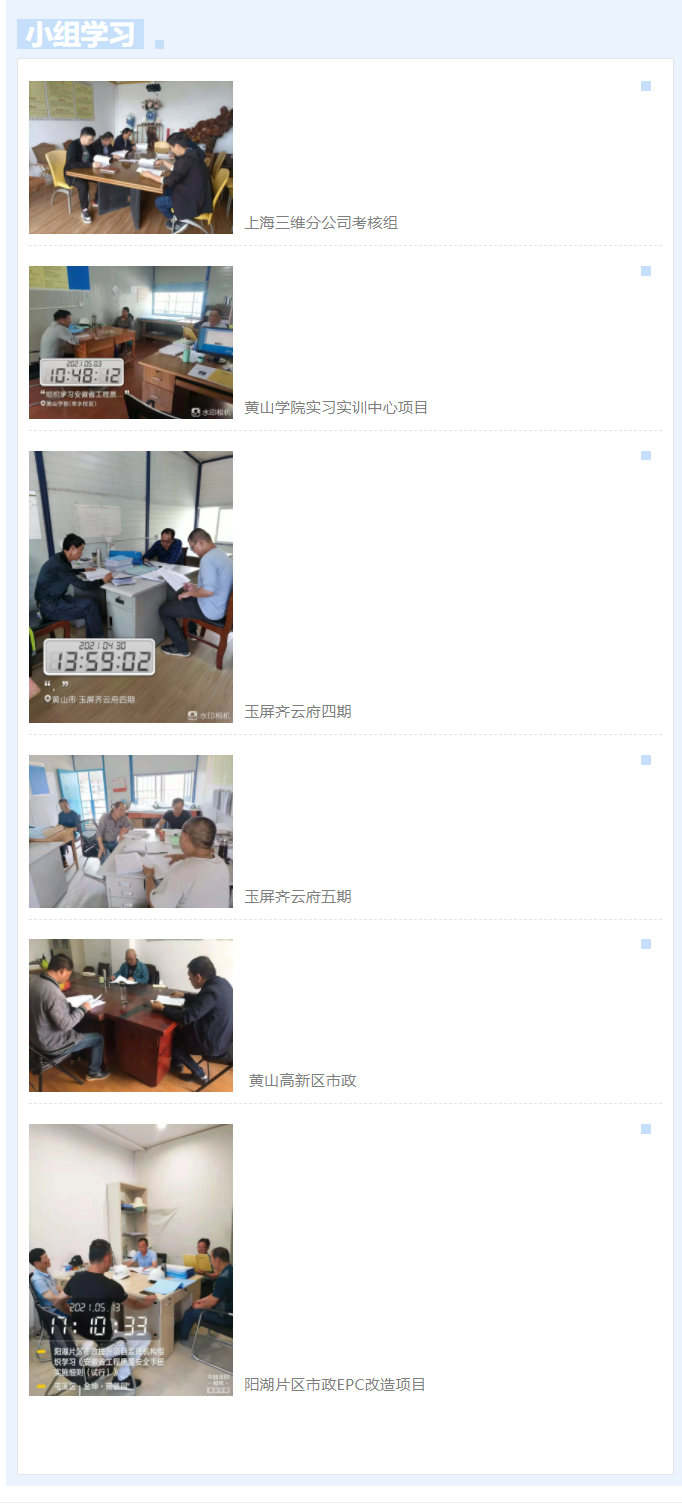 近期,安徽省住房和城鄉(xiāng)建設(shè)廳發(fā)布了《安徽省工程質(zhì)量安全手冊(cè)實(shí)施細(xì)則》(試行),為深入貫徹落實(shí)施工現(xiàn)場(chǎng)質(zhì)量和安全受控的方針和“安全第一、預(yù)防為主、綜合治理”的中心思想,上海三維工程建設(shè)咨詢(xún)有限公司黃山分公司組織在黃區(qū)域各項(xiàng)目監(jiān)理機(jī)構(gòu)對(duì)《安徽省工程質(zhì)量安全手冊(cè)實(shí)施細(xì)則》進(jìn)行印刷學(xué)習(xí)。