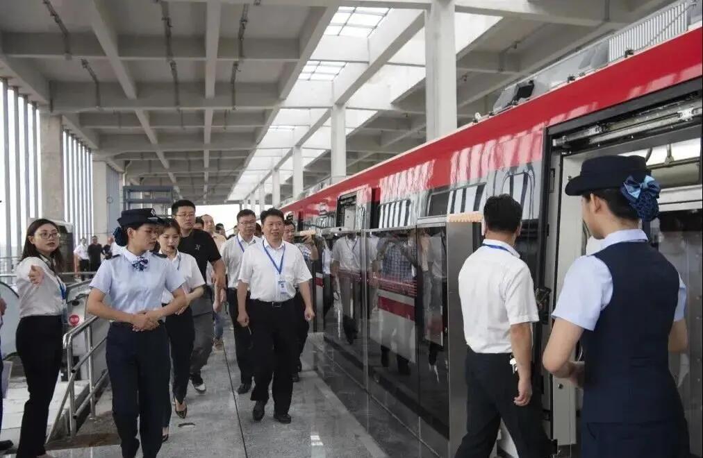 6月28日9時10分,在金華軌道交通控制中心,隨著市軌道交通集團(tuán)黨委書記、董事長鄭公民一聲令下,主司機(jī)推動手柄,一列紅色額頭和腰線,具有金華辨識度的電動客車緩緩離開軌道大廈站,向八一南街站方向駛?cè)?/span>。