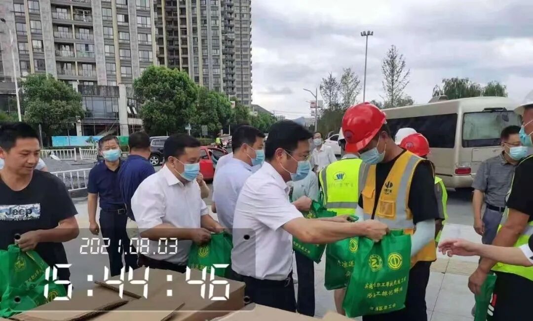 隨后親切慰問施工人員,并親手為一線工人送去礦泉水、西瓜、清涼油、風油精等防暑降溫物資,感謝大家為城市建設所付出的努力,并叮囑大家要避開高溫時段作業(yè),做好防暑降溫工作,保護自身安全。
