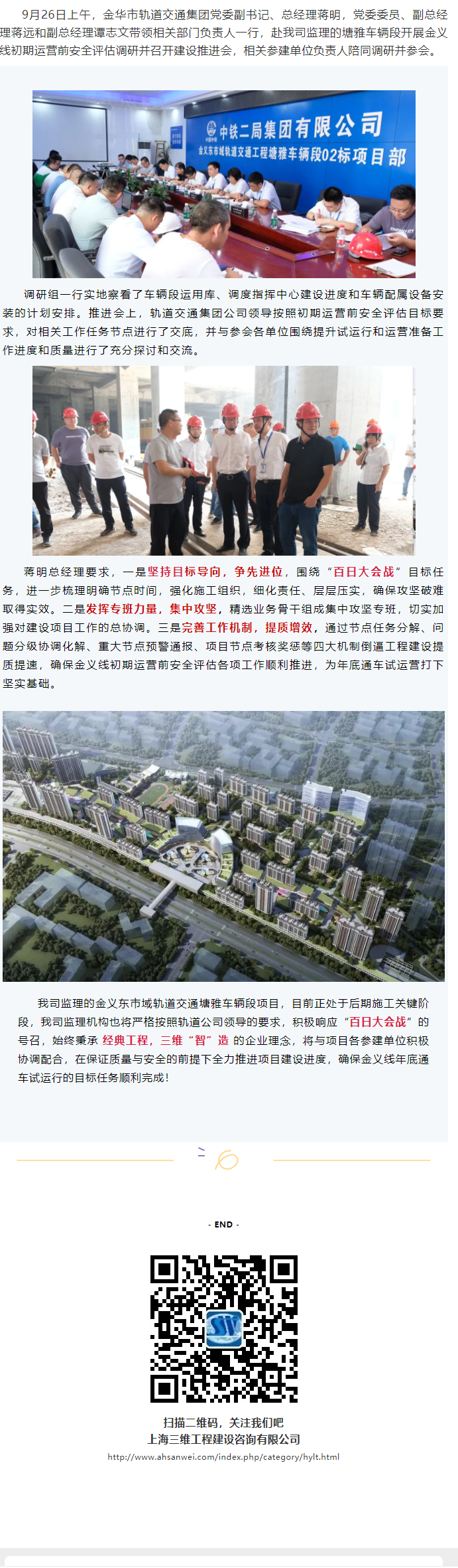 金華市軌道交通集團領(lǐng)導(dǎo)一行調(diào)研檢查我司參與監(jiān)理的金義東市域軌道交通項目建設(shè)情況