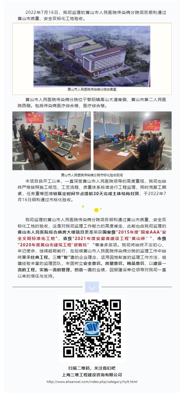 我司監(jiān)理的黃山市人民醫(yī)院傳染病分院項目順利通過黃山市質(zhì)量、安全雙標(biāo)化工地驗收
