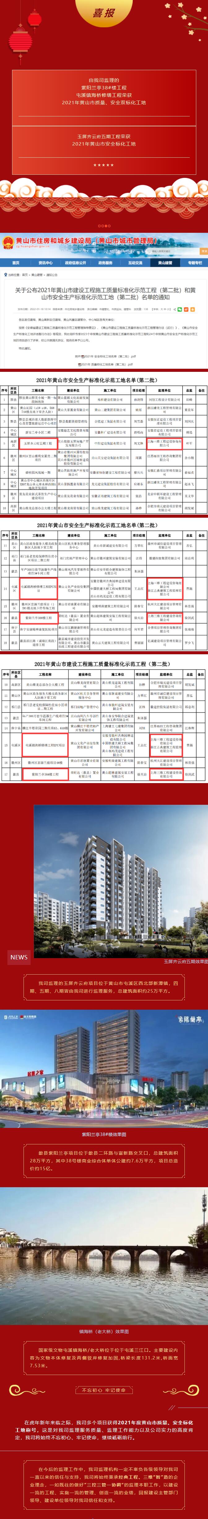 喜 報(bào) | 我司監(jiān)理的多個(gè)項(xiàng)目榮獲2021年度黃山市質(zhì)量、安全雙標(biāo)化工地稱號(hào)
